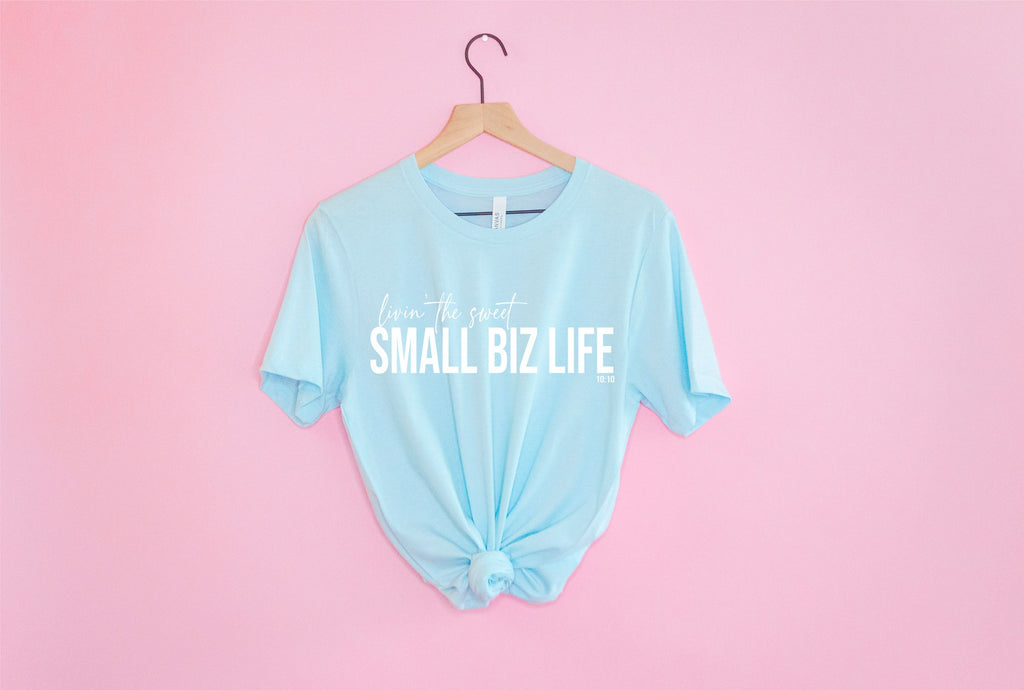 "Livin' The Sweet Small Biz Life" Our super soft crew neck tee's are so soft that you will love it from the moment you first put it on. Featuring a crew neck, short sleeve and made with 100% cotton.
