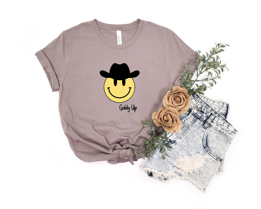 Howdy Smiley Face Short Sleeve T-Shirt-Multiple Colors