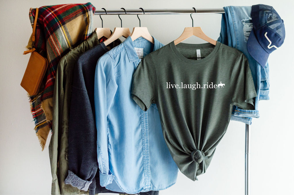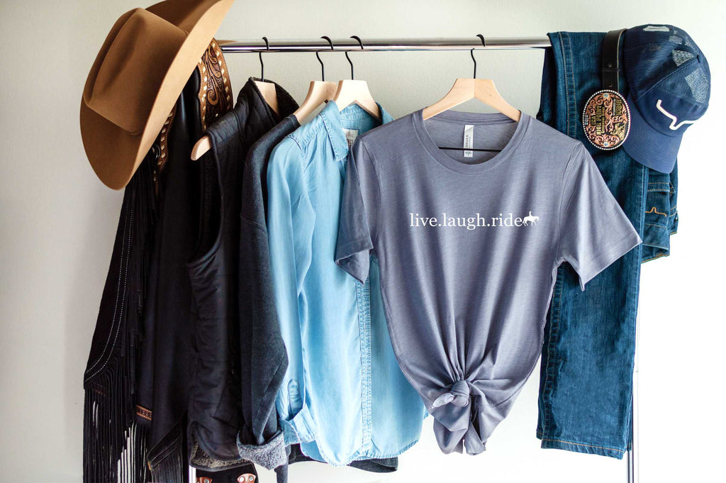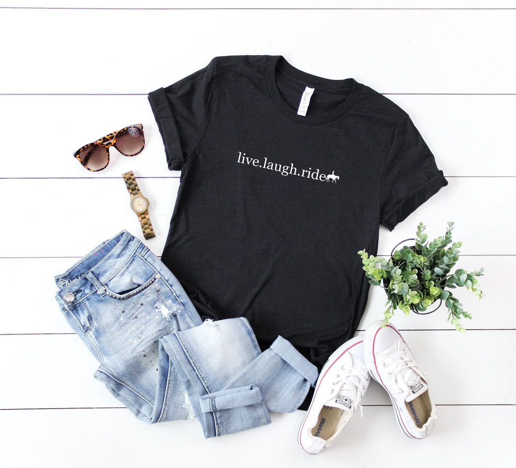 Enjoy life in the saddle wearing our Live. Laugh. Ride Western Rider T-Shirt! Printed with a classic western-inspired design, this soft and comfy shirt is perfect for all horse lovers looking for a way to express their love of riding.