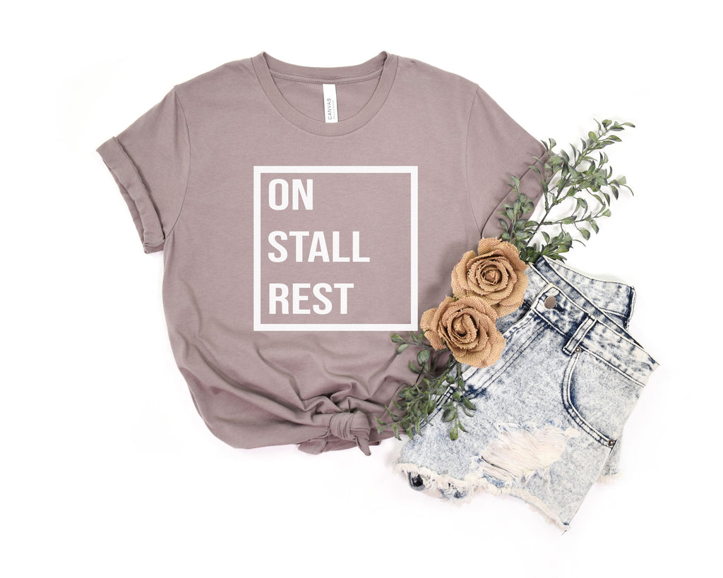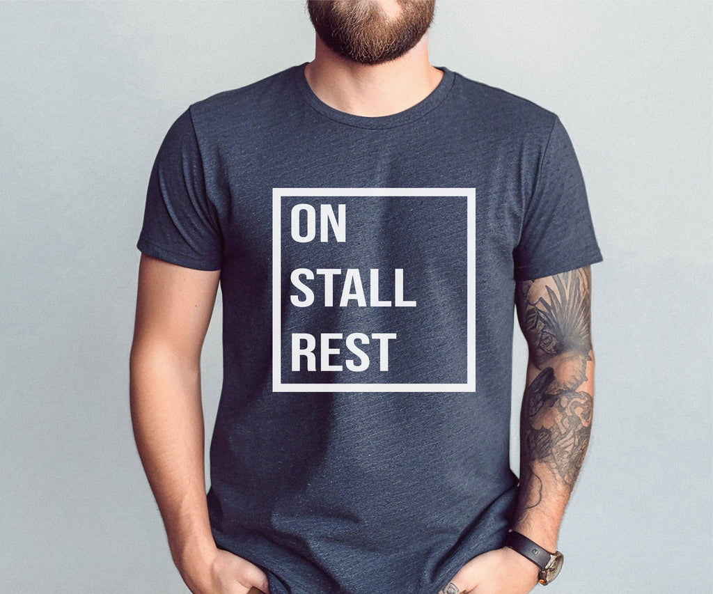 Surprise your horse-loving friends with our best selling On Stall Rest Quarantine T-Shirt! This playful tee is perfect for equestrians who need a break from riding. It's an ideal end-of-season gift for coaches or riders, or a great get-well gift for those unable to ride due to injury or other circumstances. Let them know you're thinking of them!