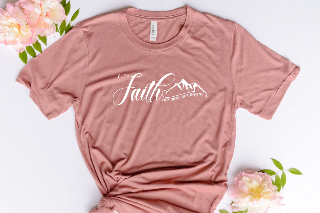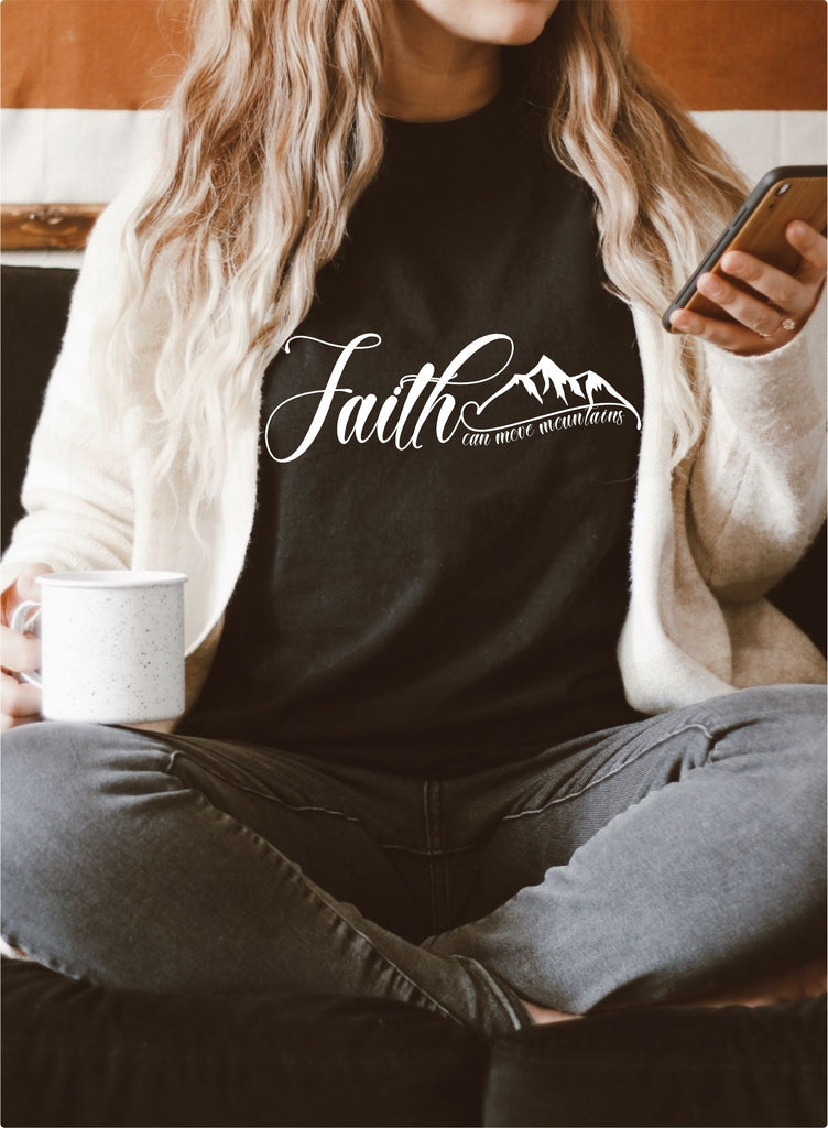 This Faith Can Move Mountains tshirt is the perfect uplifting reminder to never give up on your dreams. The soft and comfy material promises a comfortable fit for any occasion. Let faith be your guide and inspire you to conquer you goals!