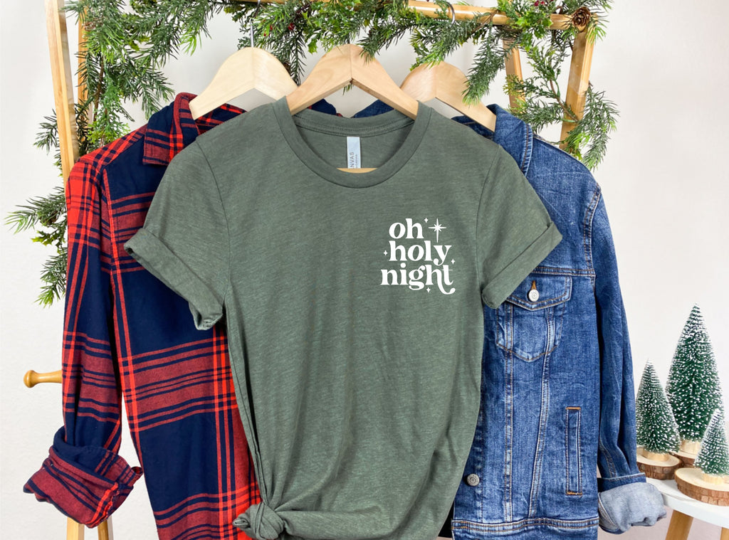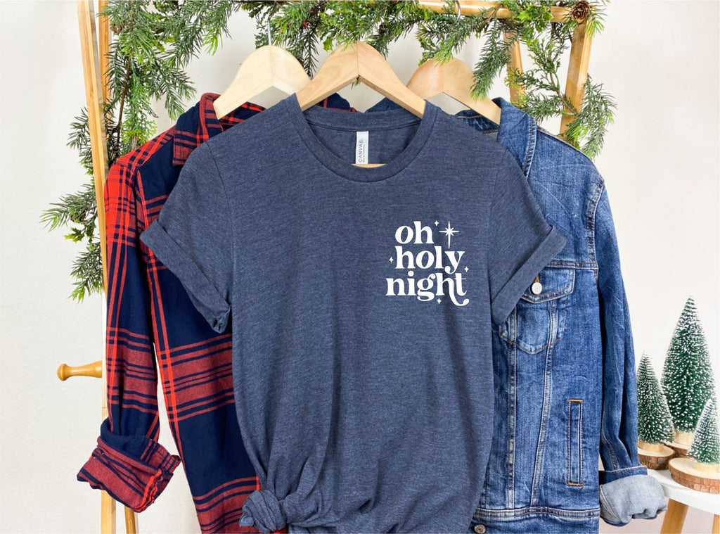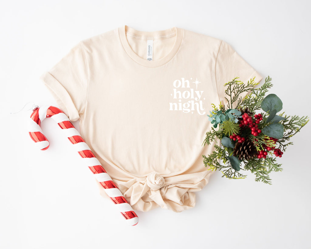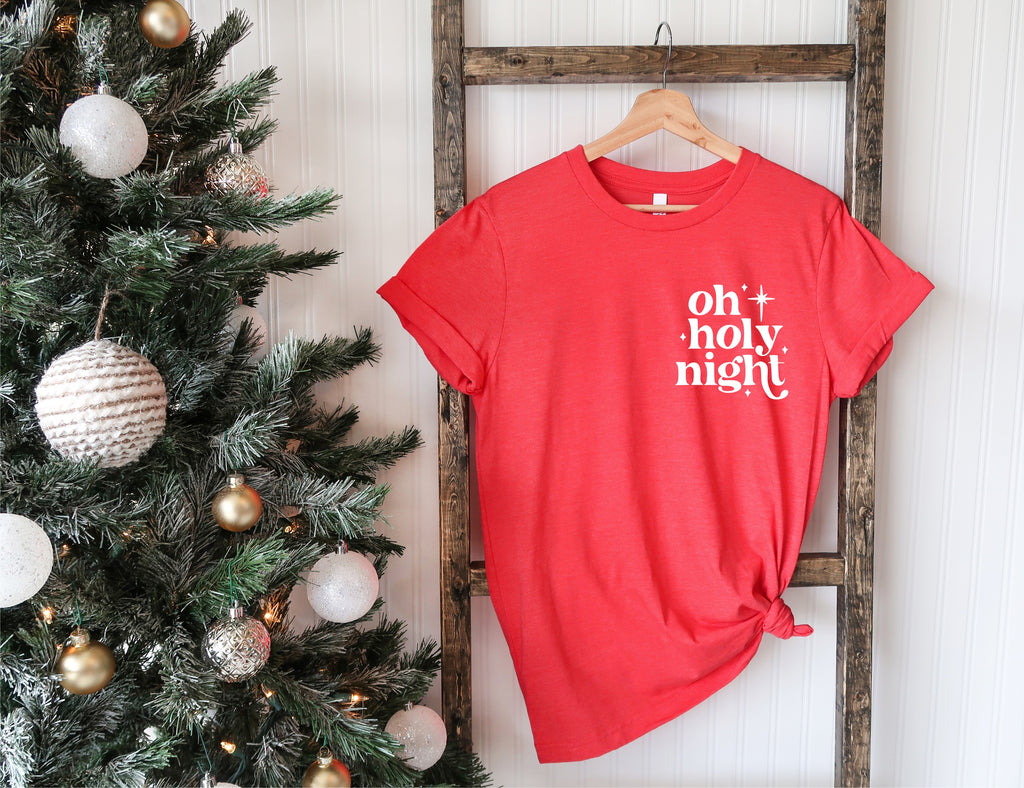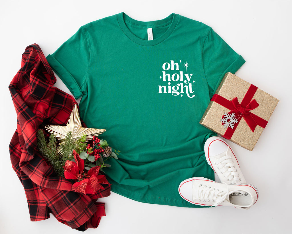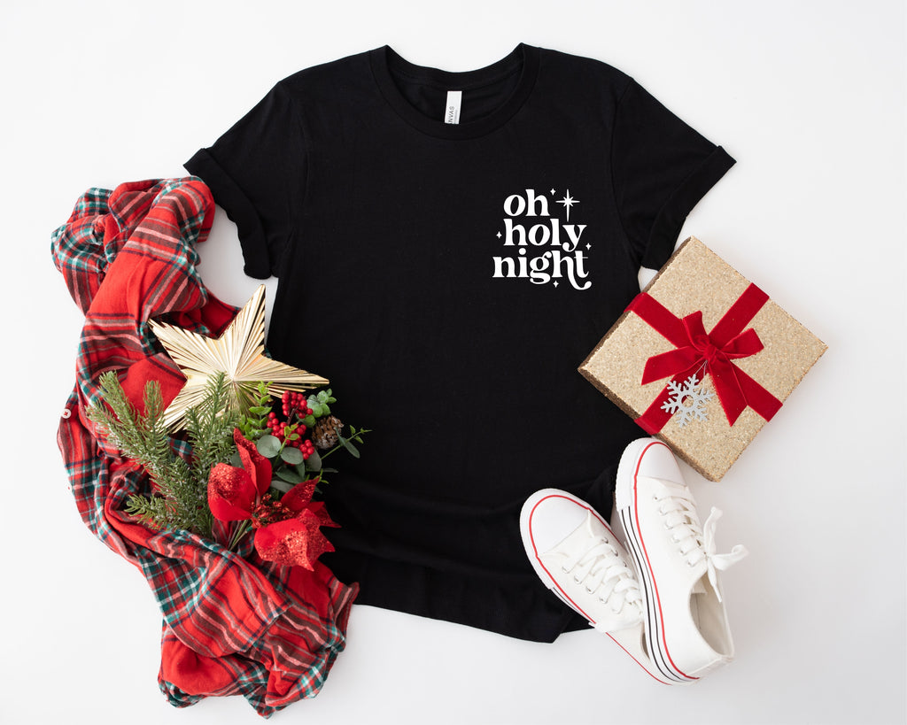 Oh Holy Night the Stars are Brightly Shining- Jesus is the reason for the season...share the magic of Christmas. Our super soft crew neck tee's are so soft that you will love it from the moment you first put it on. Featuring a crew neck, short sleeve and made with 100% cotton.